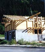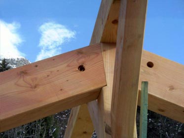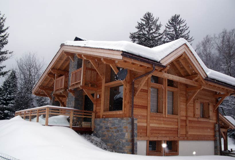 Nous utilisons en priorité les essences adaptées au climat de montagne : épicéa et pin Douglas. Le montage et l'assemblage sont réalisés par nos propres équipes de charpentiers qualifiés.